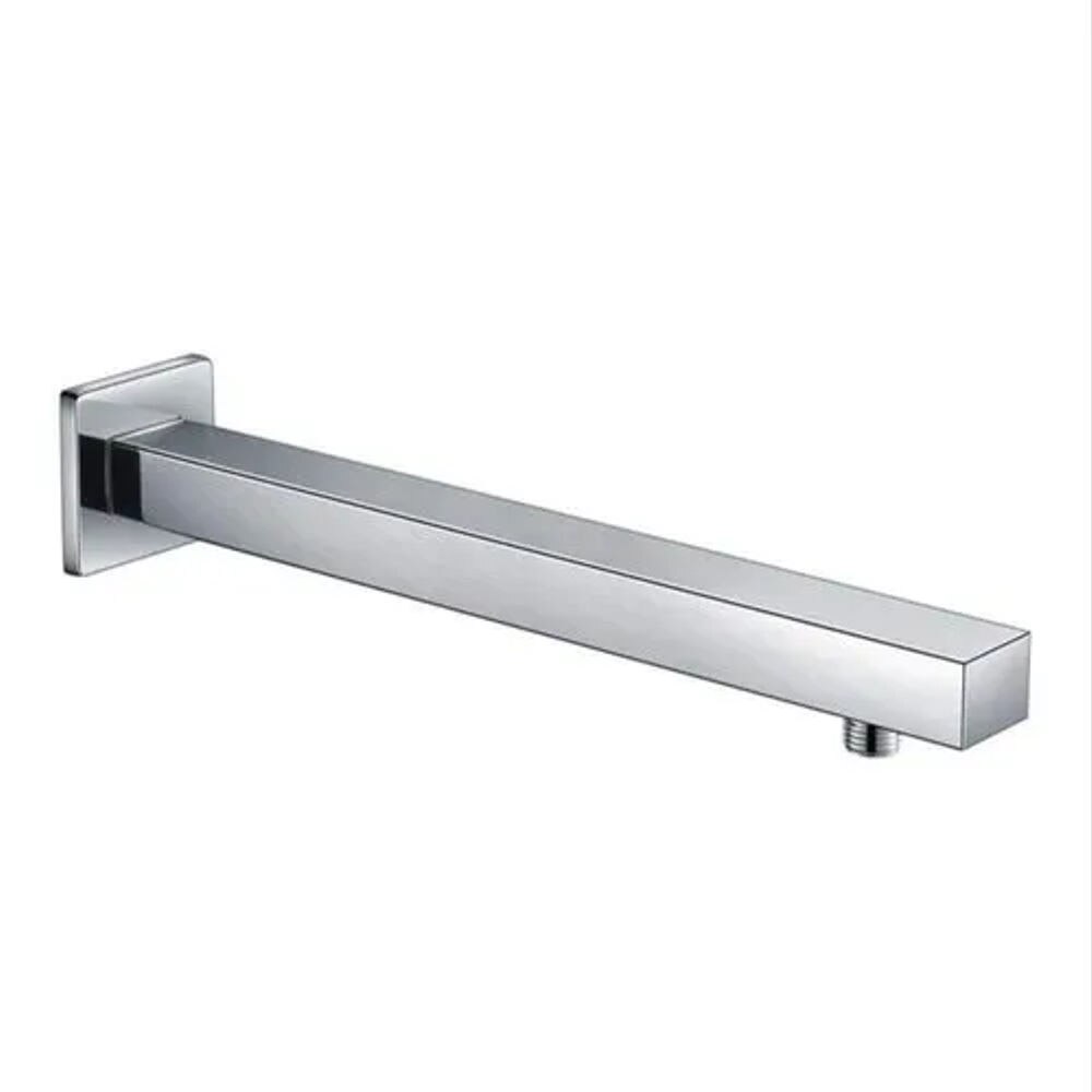 This wall-mount shower arm stainless steel with a glossy, reflective finish It is designed for use with wall-mounted rain showers solid brass for resistance to rust and corrosion