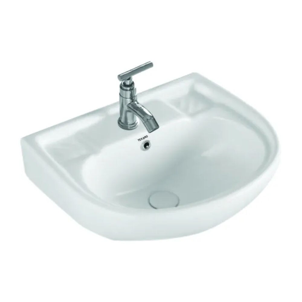 The wash basin is made of ceramic. It is designed for use in a bathroom.